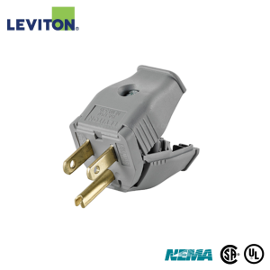 ENCHUFE C/BISAGRA PVC GRIS 15A 125V L/T – LEVITON