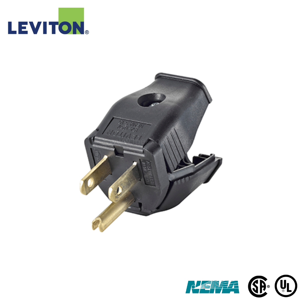 ENCHUFE C/BISAGRA PVC NEGRO 15A 125V L/T – LEVITON