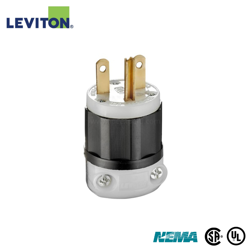 ENCHUFE PLANO CAUCHO 15A L/T 125/250V NEMA 5-15P- LEVITON