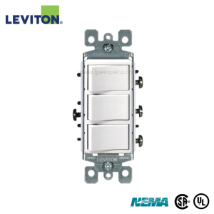 INTERRUPTOR TRIPLE DECORA 15A 250V BLANCO – LEVITON