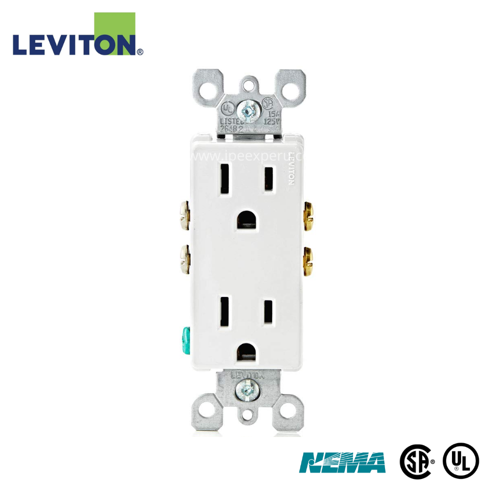 TOMACORRIENTE DOBLE EMPOTRABLE 15A 125V L/T BLANCO – LEVITON