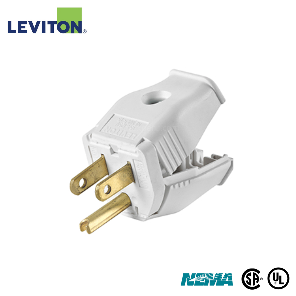 El enchufe Leviton 3W101-WH es un enchufe de conexión a tierra de 15A y 125V, con formato NEMA 5-15P, Su diseño tipo Clamptite con bisagra permite una instalación rápida y segura, sin necesidad de herramientas especiales. Fabricado en termoplástico, blanco.